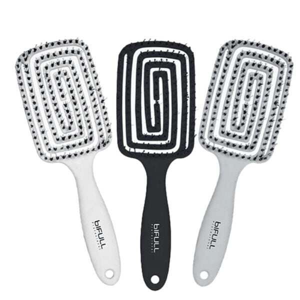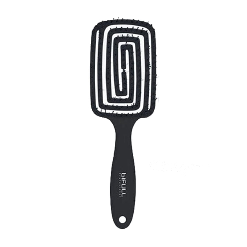 - H Bifull Profesional Skeleton brush Black έχει μια γεωμετρική και εύκαμπτη δομή που προσαρμόζεται εύκολα στο κεφάλι για βούρτσισμα από τη ρίζα μέχρι την άκρη.