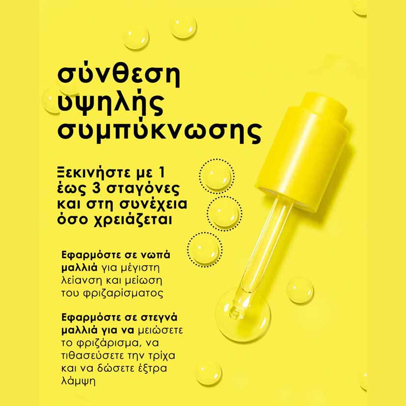 Έλαιο ενδυνάμωσης και λείανσης που δρα σε δυο επίπεδα στο εσωτερικό της τρίχας και αντιμετωπίζει αποτελεσματικά το φριζάρισμα. Το πεπτίδιο K18PEPTIDE εισχωρεί στην τρίχα για να αποκαταστήσει τη φθορά που έχει σαν αποτέλεσμα τα μαλλιά να φριζάρουν. Παράλληλα προσφέρει ενδυνάμωση και λείανση σε βάθος χρόνου.