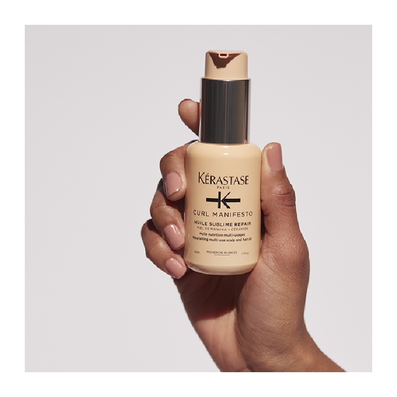 Έλαιο βαθιάς θρέψης Curl Manifesto Huile Sublime Repair με Μέλι Manuka και Ceramide για σγουρά, πολύ σγουρά και άφρο μαλλιά. Αυτό το φυσικό έλαιο μπορεί να χρησιμοποιηθεί με πολλούς τρόπους στη ρουτίνα περιποίησης των μαλλιών και του τριχωτού προσφέροντας πλούσια θρέψη, σχήμα, λάμψη και μείωση του φριζαρίσματος στις μπούκλες. Χρησιμοποιήστε τη ρουτίνα περιποίησης Curl Manifesto για καλοσχηματισμένες μπούκλες με ελαστικότητα.