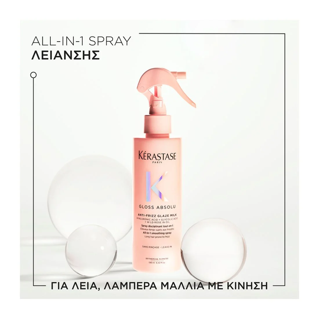 Το Anti-Frizz Glaze Milk της Kérastase είναι ένα σπρέι λείανσης με πολλαπλά οφέλη για μακριά μαλλιά με τάση φριζαρίσματος. Η εξειδικευμένη σύνθεσή του με υαλουρονικό οξύ, γλυκολικό οξύ και έλαιο άγριου τριαντάφυλλου εξασφαλίζει ονειρεμένα, glossy μαλλιά με ανάλαφρη κίνηση.