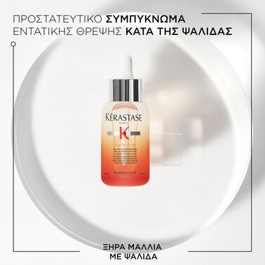 Το Nutri-Supplement Split Ends Serum της Kérastase είναι ένας ορός εντατικής θρέψης κατά της ψαλίδας για ξηρά μαλλιά με ψαλίδα. Αυτός ο συμπυκνωμένος ορός περιέχει Πολυμερή Κατά της Ξηρότητας που προλαμβάνουν την εμφάνιση της ψαλίδας. Έχει επίσης υψηλή περιεκτικότητα σε απαραίτητα θρεπτικά συστατικά που ενισχύουν τις θρεπτικές και ενδυναμωτικές ιδιότητες της σύνθεσης.