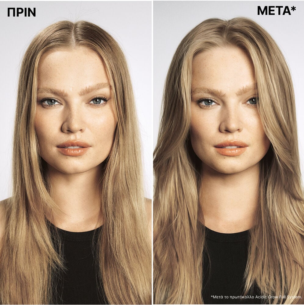 Το Acidic Grow Full System Spray με θερμοπροστασία έως τους 230°C. Το 80% συμφωνεί ότι τα μαλλιά δεν εμφανίζουν λιπαρότητα με την εφαρμογή.