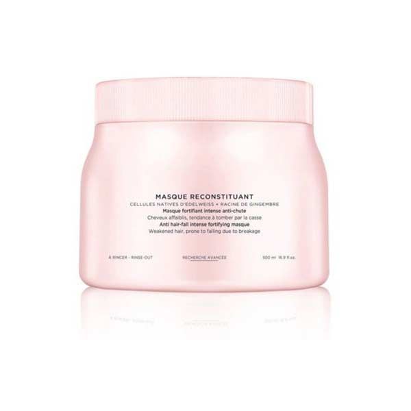Η μάσκα Reconstituant προσφέρει εντατική ενδυνάμωση στα αδύναμα μαλλιά με τάση τριχόπτωσης που προκαλείται από το σπάσιμο της τρίχας. Η πλούσια αυτή σύνθεση προσφέρει εντατική θρέψη, ξεμπερδεύει τα μαλλιά, και ενδυναμώνει την τρίχα μειώνοντας τον κίνδυνο τριχόπτωσης από το σπάσιμο της τρίχας. Εμπλουτισμένη με έναν συνδυασμό Βλαστοκυττάρων Εντελβάις και Ρίζας Τζίντζερ, αυτή η μάσκα βαθιάς περιποίησης αναζωογονεί τα μαλλιά ενδυναμώνοντας τις καταπονημένες περιοχές της τρίχας. Χάρη στα πανίσχυρα συστατικά της, κάνει τα μαλλιά ευκολοχτένιστα & απαλά θρέφοντάς τα σε βάθος. Τα μαλλιά γίνονται πιο δυνατά, πιο απαλά και πιο λαμπερά.