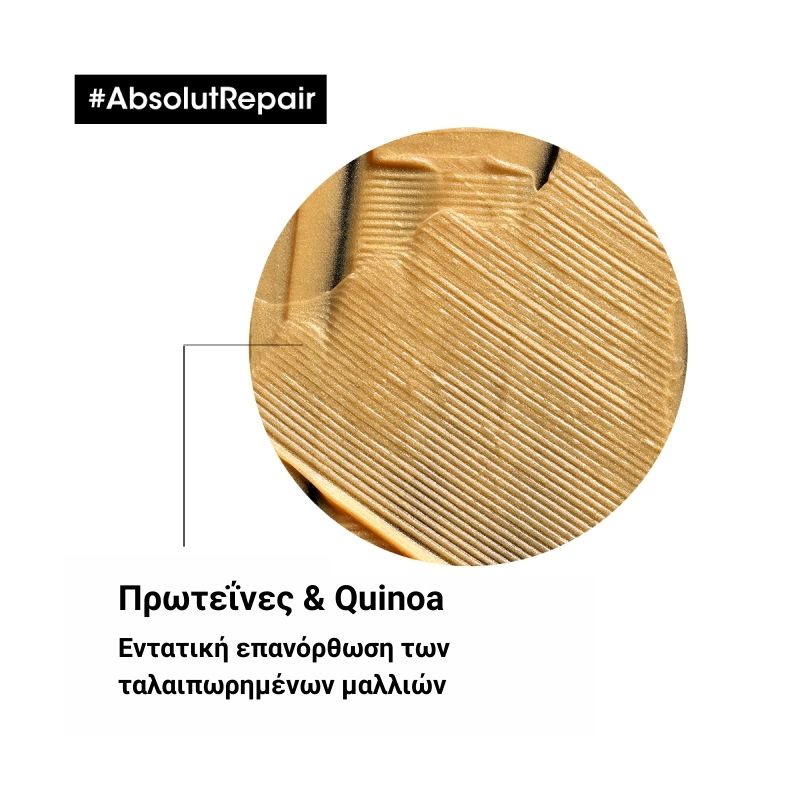Εμπλουτισμένη με GOLD QUINOA + ΠΡΩΤΕΪΝΗ, η επαγγελματική, ανατρεπτική χρυσαφένια σύνθεση της Resurfacing Golden Masque επανορθώνει αμέσως κάθε τύπο μαλλιών εξασφαλίζοντας ανάλαφρο άγγιγμα. Η κρεμώδης τζελ υφή της αφήνει τα μαλλιά 7x πιο λαμπερά* και πιο λεία, χωρίς να αφήνει κατάλοιπα στην τρίχα.
