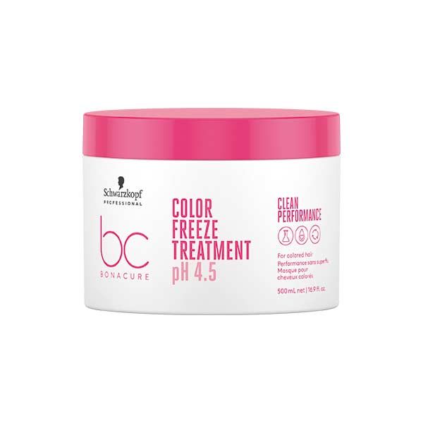 Η Color Freeze Treatment είναι μια κρεμώδης μάσκα επανόρθωσης από τη σειρά Bonacure Color Freeze, ειδικά σχεδιασμένη για βαμμένα μαλλιά. Αυτή η θεραπεία προσφέρει περιποίηση σε βάθος και επανορθώνει σε βάθος τα βαμμένα μαλλιά. Επαναφέρει τα μαλλιά στο ιδανικό επίπεδο pH, σφραγίζοντας άψογα τα χρωστικά πιγμέντα στο εσωτερικό της δομής της τρίχας, προλαμβάνοντας το ξεθώριασμα προσφέροντας μεγάλη διάρκεια στο χρώμα.