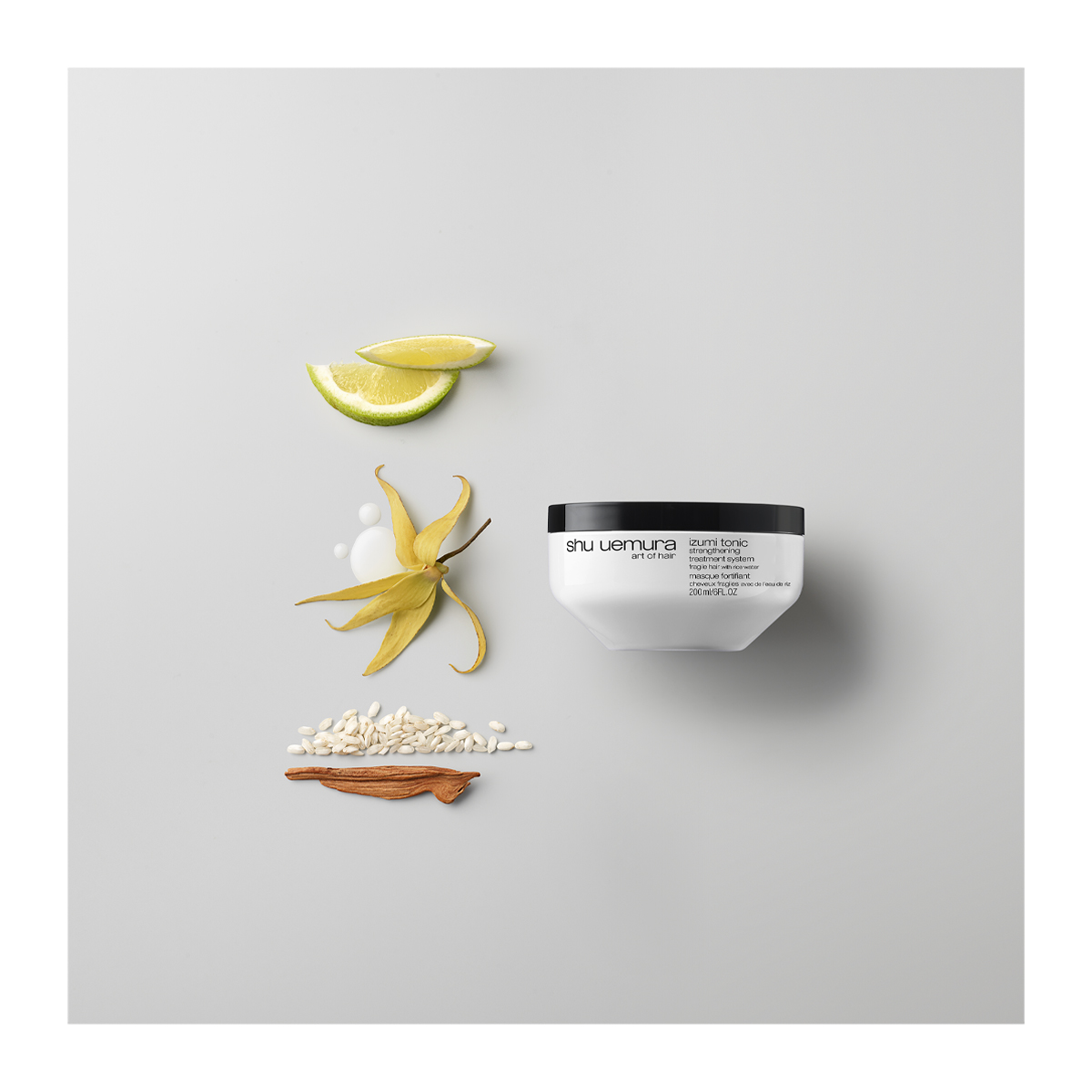 Το izumi – σιντριβάνι στα ιαπωνικά – tonic μάσκα ενδυνάμωσης είναι εμπνευσμένο από το yu-su-ru, την αρχαία ιαπωνική παράδοση για την ομορφιά των μαλλιών που βασίζεται στο λούσιμο με νερό ρυζιού. Αυτή η θεραπεία με πλούσια υφή, που χρησιμοποιείται με την izumi tonic περιποίηση, ενισχύει, πυκνώνει, ενυδατώνει και χαρίζει λάμψη στα μαλλιά. Τα μαλλιά είναι έως και 30 φορές πιο δυνατά, πιο πυκνά με αυξημένη διάμετρο, προστατεύονται από το σπάσιμο, και η ψαλίδα μειώνεται έως και 91%. Τα μαλλιά είναι απαλά, λεία & γεμάτα λάμψη.