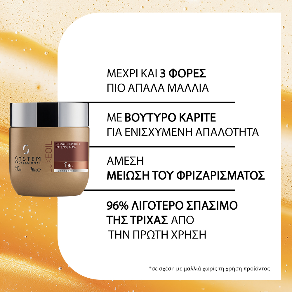 Μάσκα εντατικής θεραπείας. Αναδομεί και θρέφει εντατικά τα μαλλιά. Νέα, πιο πλούσια μάσκα με βούτυρο καριτέ για υψηλότερο επίπεδο απαλότητας και ευκολίας διαχείρισης των μαλλιών.