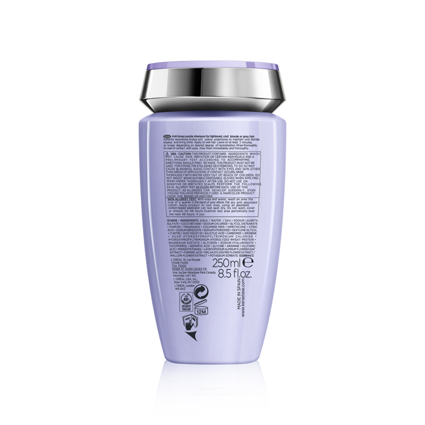 Το Blond Absolu Bain Ultra-Violet της Kérastase είναι ένα μωβ σαμπουάν για θρέψη με συστατικά εξουδετέρωσης Ultra-Violet για μείωση των πορτοκαλί τόνων, χάρη στα οποία αποτελεί ένα από τα καλύτερα σαμπουάν για για ξανθά μαλλιά που έχουν υποβληθεί σε ξάνοιγμα ή άλλες υπηρεσίες βαφής. Χάρη στη ρευστή «ultra-violet» υφή, το Bain Ultra-Violet εξουδετερώνει τους πορτοκαλί και τους κίτρινους τόνους, ώστε το χρώμα των μαλλιών σας να παραμένει φωτεινό και λαμπερό. Εμπλουτισμένο με υαλουρονικό οξύ και εκχύλισμα άνθους εντελβάις, αποκαθιστά τη δύναμη και την απαλότητα των μαλλιών. Τα μαλλιά σας ενυδατώνονται, αποκαθίστανται και λάμπουν.