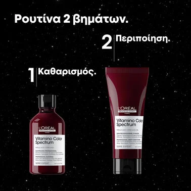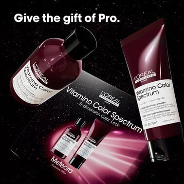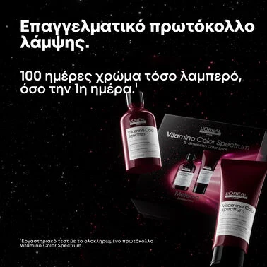 Vitamino Color Spectrum Gift Set Trio – Επαγγελματικό Σαμπουάν, ενυδατικό Conditioner & Glass Shine Serum από τη L’Oréal Professionnel, με σύνθεση Φερουλικού Οξέος + Κιτρικού Οξέος 2.5%. 100 ημέρες χρώμα τόσο λαμπερό, όσο την 1η ημέρα*. Αποδεδειγμένη αποτελεσματικότητα στις 5 διαστάσεις χρώματος**: