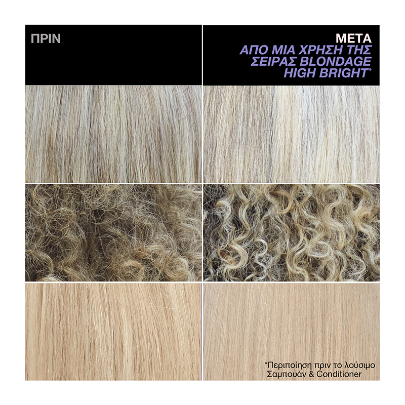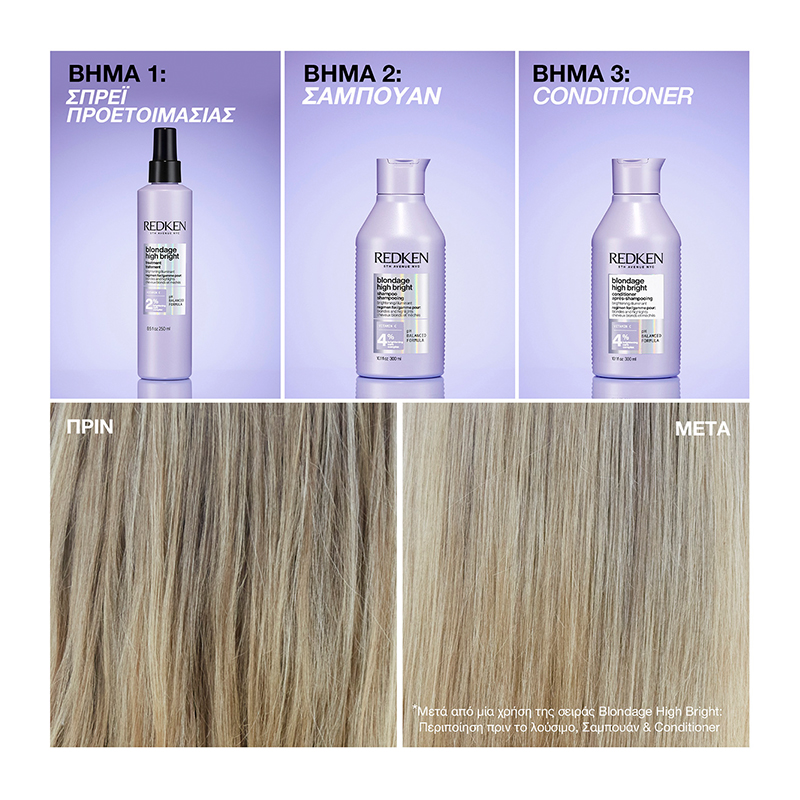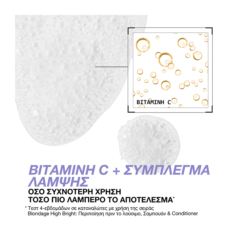 Το σαμπουάν Blondage High Bright είναι η απάντησή μας στα ξανθιά μαλλιά που χάνουν την φωτεινότητά τους μετά από υπηρεσίες βαφής και ξανοίγματος. Το νέο αυτό σύστημα περιποίησης του ξανθού είναι εμπλουτισμένο με βιταμίνη C καθώς και με το Brightening Care Complex της Redken, το οποίο στοχεύει στην απομάκρυνση των καταλοίπων ενώ παράλληλα φωτίζει τα θαμπά, βαμμένα μαλλιά. αποκτήστε άμεσα πιο λαμπερό ξανθό από την πρώτη κιόλας χρήση της ολοκληρωμένης σειράς Blondage High Bright. Το σαμπουάν αποτελεί το 2o βήμα της διαδικασίας περιποιήσης.