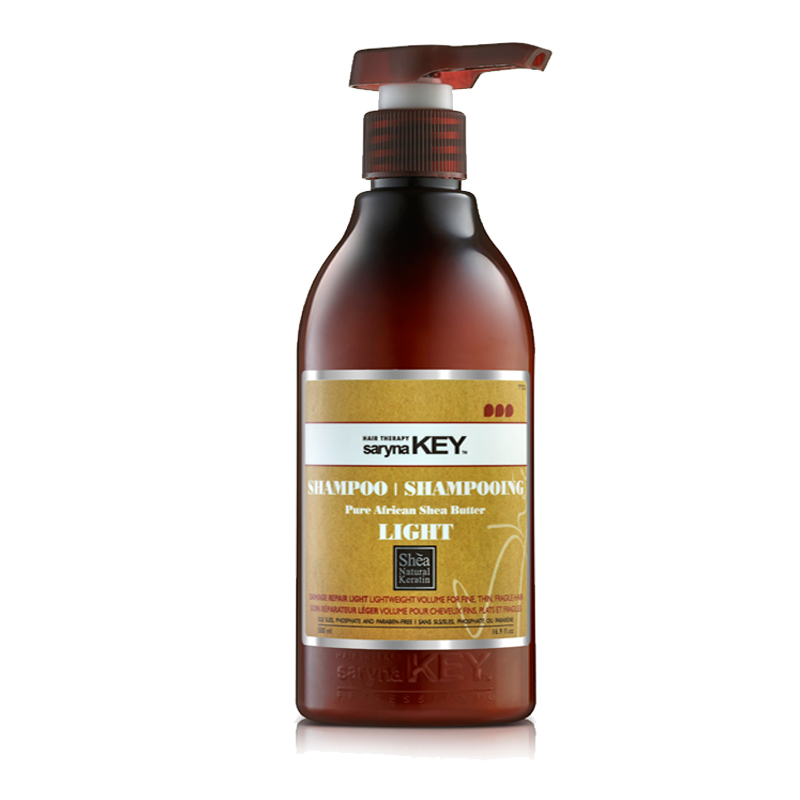 Το Saryna Key Damage Repair Light Shampoo περιέχει βούτυρο καριτέ, μια ισχυρή φυσική πηγή κερατίνης που αποκαθιστά την επιφάνεια των ινών της τρίχας.