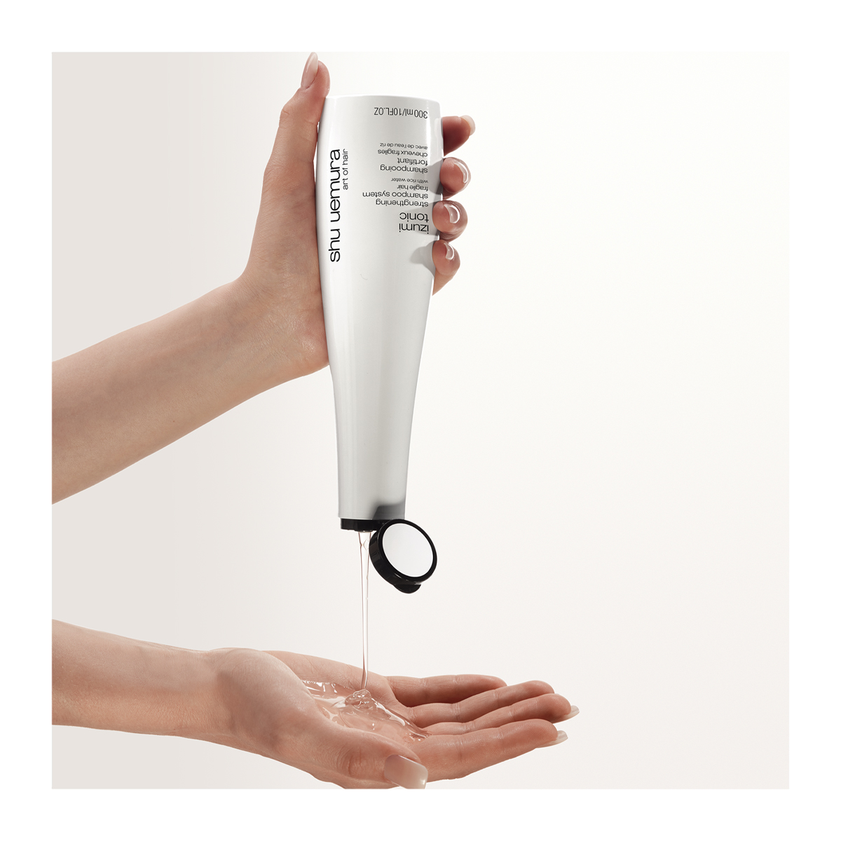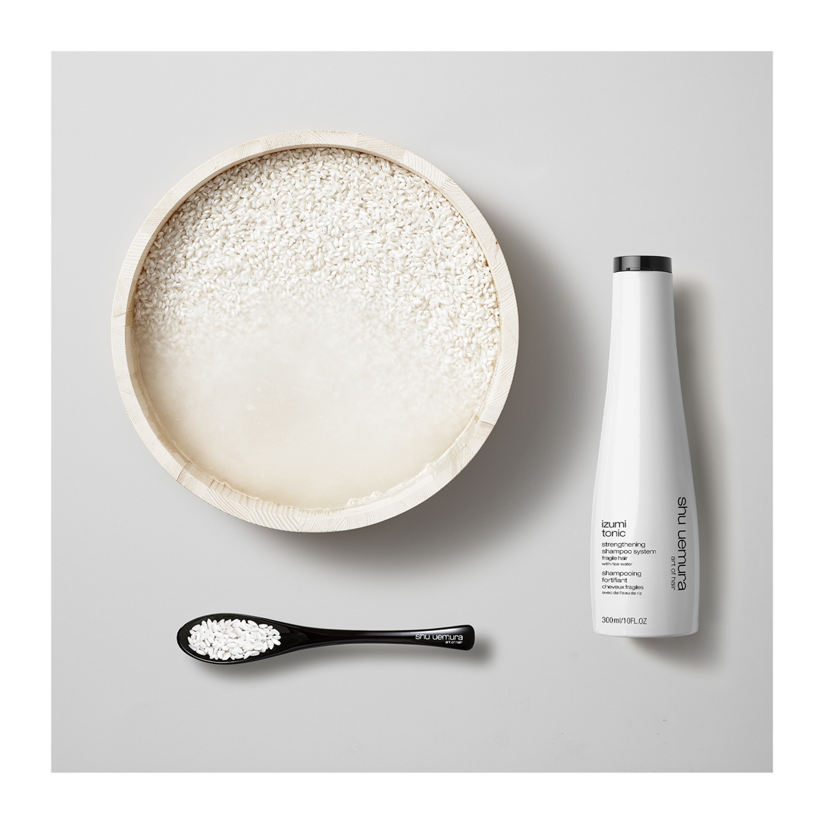 Το izumi – σιντριβάνι στα ιαπωνικά – tonic σαμπουάν ενδυνάμωσης είναι εμπνευσμένο από το yu-su-ru, την αρχαία ιαπωνική παράδοση για την ομορφιά των μαλλιών που βασίζεται στο λούσιμο με νερό ρυζιού. Αυτή η ελαφριά διαφανής φόρμουλα, που χρησιμοποιείται με την izumi tonic περιποίηση, καθαρίζει απαλά, δυναμώνει & πυκνώνει τα μαλλιά. Τα μαλλιά είναι έως και 30 φορές πιο δυνατά, πιο πυκνά με αυξημένη διάμετρο, προστατεύονται από το σπάσιμο, και η ψαλίδα μειώνεται έως και 91%. Τα μαλλιά είναι απαλά, λεία & γεμάτα λάμψη.