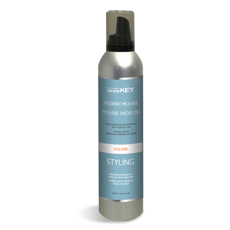 To Saryna Key Volume Styling Radiant Mousse εμπλουτισμένo με τις θρεπτικές ιδιότητες του Shea Butter.