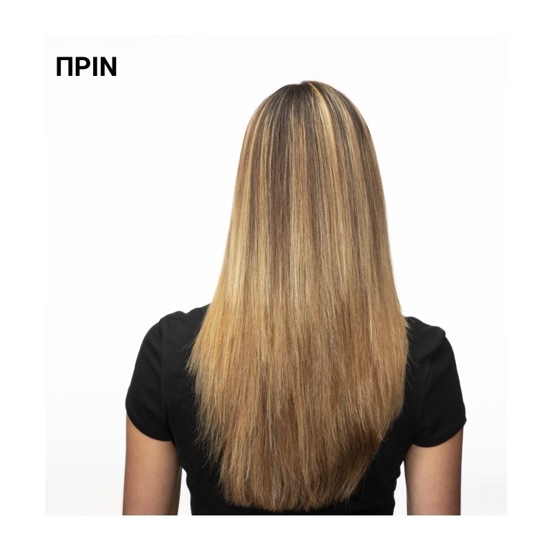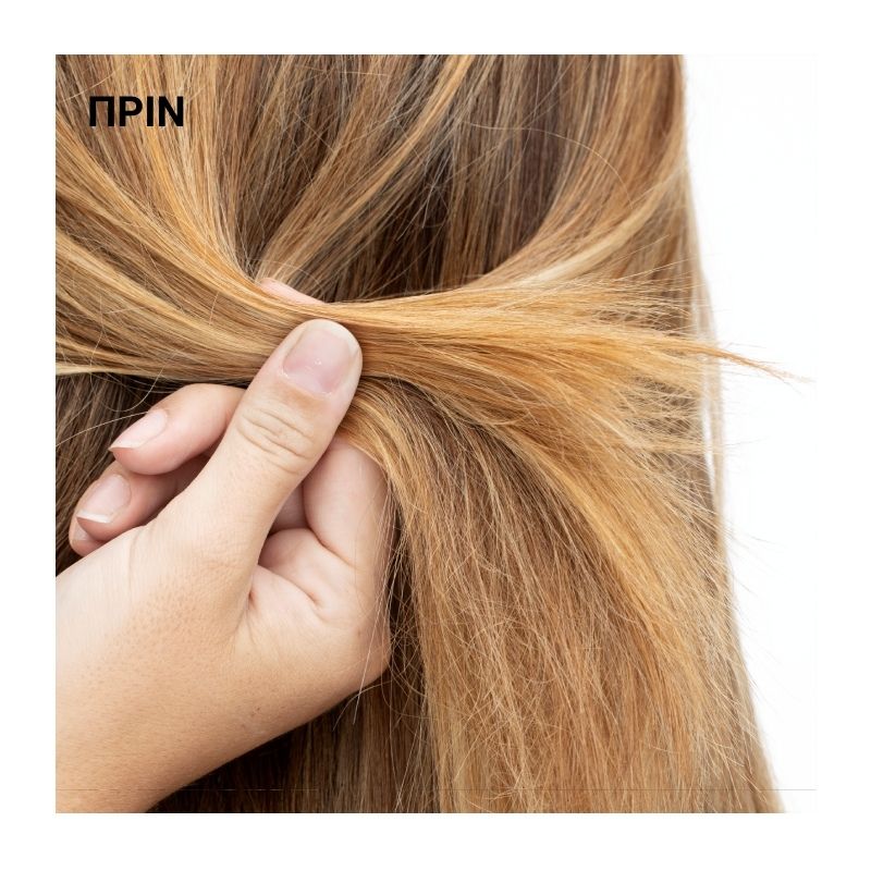 - Μετά το Extreme Bleach Recovery σαμπουάν, ταμπονάρετε τα μαλλιά και εφαρμόστε 1-4 δόσεις από την μέση ως τις άκρες, αναλόγως το μάκρος των μαλλιών. (1 δόση = 10ml)