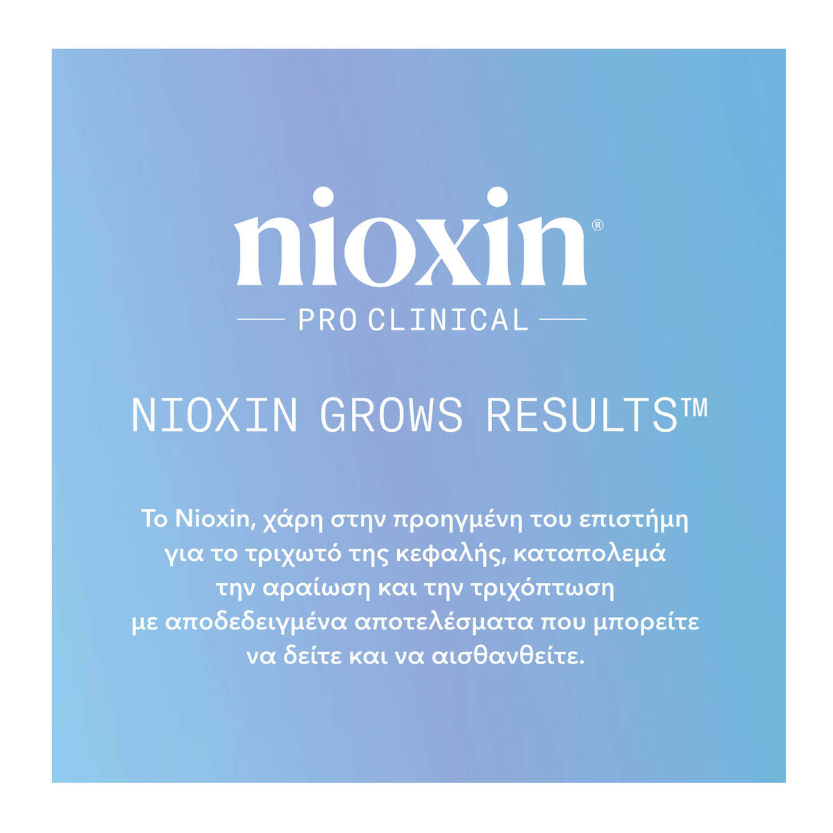 Το πρώτο δραστικό σαμπουάν του Nioxin εμπλουτισμένο με Νιασιναμίδη, Καφεΐνη και Sandalore αφαιρεί τη συσσώρευση επιβλαβών στοιχείων και προάγει (δεν πρόκειται για προϊόν αναγέννησης μαλλιών) την ανάπτυξη πιο δυνατών μαλλιών από τη ρίζα, με αποτέλεσμα ορατή μείωση της τριχόπτωσης σε 12 εβδομάδες (μετά από κλινική μελέτη διάρκειας 12 εβδομάδων στην οποία συμμετείχαν 30 καταναλωτές με τριχόπτωση).