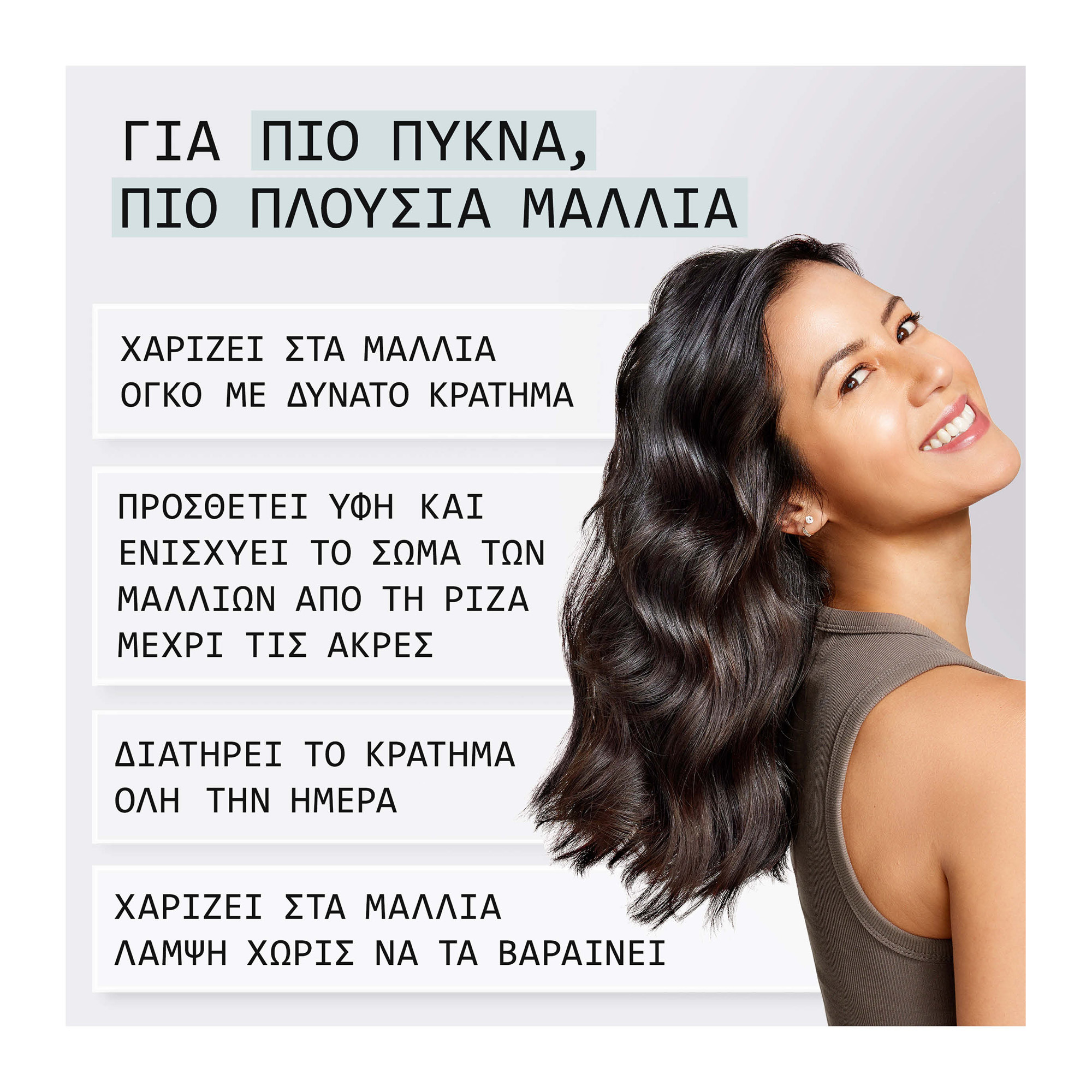 - Ένα ευέλικτο προϊόν styling που σας βοηθά να πετύχετε την επιθυμητή εμφάνιση με όγκο και πυκνότητα.