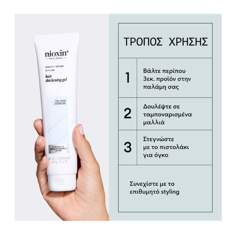 - Ένα τζέλ styling που δίνει όγκο που βοηθά στη δημιουργία της όψης πιο γεμάτα και πυκνά μαλλιά.