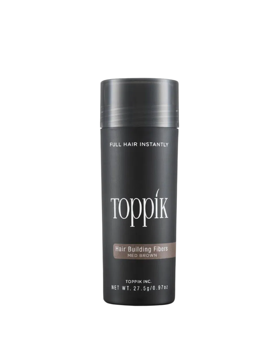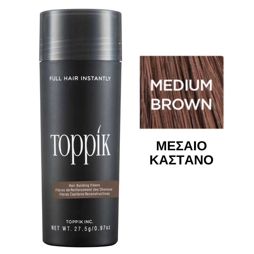 Το Toppik είναι ίνες πύκνωσης μαλλιών που καλύπτουν άμεσα τα αδύναμα και αραιά μαλλιά χαρίζοντας ένα πλούσιο και πυκνό αποτέλεσμα. Οι ίνες πύκνωσης μαλλιών Toppik προέρχονται από 100%  φυσική Κερατίνη υψηλής ποιότητας, της ίδιας πρωτεΐνης που υπάρχει στα μαλλιά μας. Οι ίνες μαλλιών Toppik μαγνητίζονται από το φυσικό στατικό ηλεκτρισμό των μαλλιών και παραμένουν απόλυτα σταθερές ακόμα και στα πιο αδύναμα και λεπτά μαλλιά. Διατίθενται σε 9 αποχρώσεις.