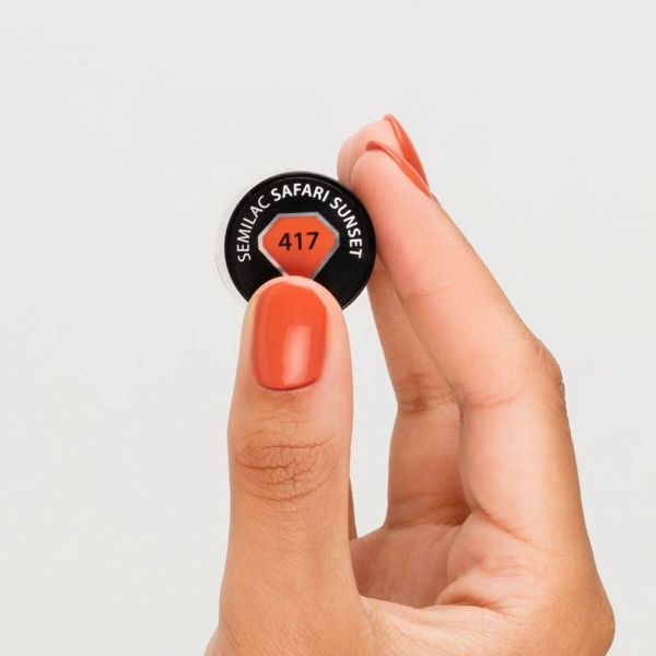 - 2. Εφαρμόζουμε την πρώτη στρώση του χρώματος Semilac, χωρίς να αγγίζουμε τα επωνύχια, και να το πολυμερίζουμε στην λάμπα.