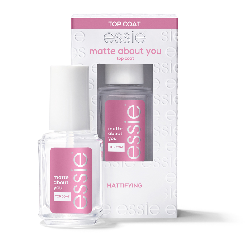 Εφαρμόστε μια βάση της Essie, συνεχίστε με 2 στρώσεις του αγαπημένου σας βερνικιού Essie και τελειώστε απλώνοντας μια λεπτή στρώση Essie Matte Αbout You αντί για γυαλιστικό.
