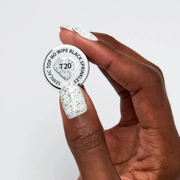 Πασπαλίστε τα νύχια σας με τις πλούσιες λάμψεις από βυθισμένα σωματίδια για να δημιουργήσετε ένα εξαιρετικό εφέ μαύρων sprinkles στο αγαπημένο σας χρώμα. Τα Top No Wipe Black Sprinkles δεν έχουν στρώμα διασποράς. Έχουν παρόμοια σύσταση με τα Standard Semilac Top No Wipe.