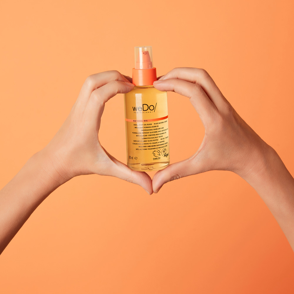 Τα φυσικά έλαια είναι πλούσια σε θρεπτικά συστατικά – μια μικρή ποσότητα είναι υπεραρκετή! Ξεκινήστε με μια μικρή ποσότητα και χρησιμοποιήστε περισσότερη αν χρειάζεται. Απλώστε σε καθαρά, νωπά μαλλιά στα μεσαία μήκη και στις άκρες.