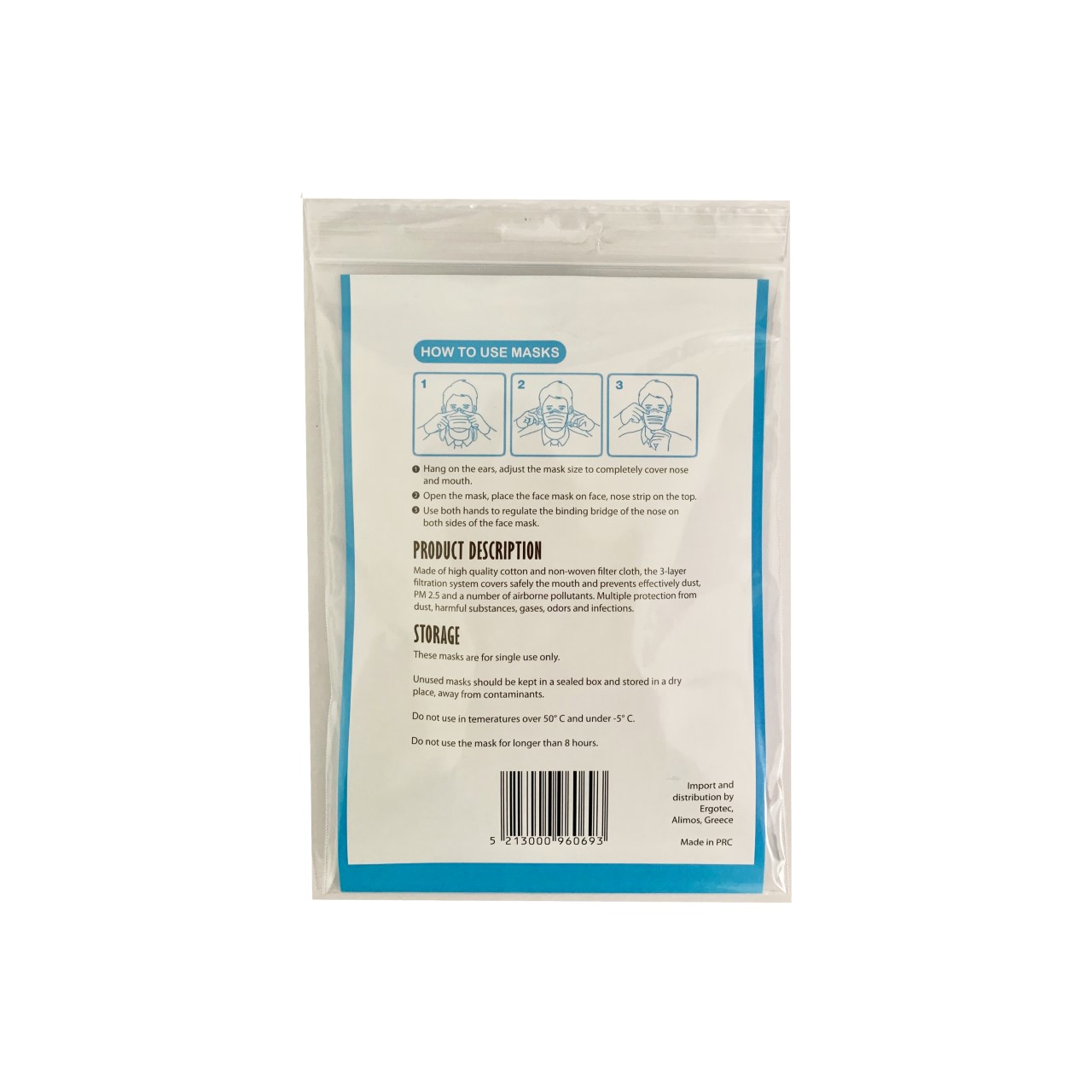 Φτιαγμένη από υψηλής ποιότητας υλικά με τρία επίπεδα προστασίας, προστατεύει από μικροσωματίδια, σκόνη, αέρια, οσμές.