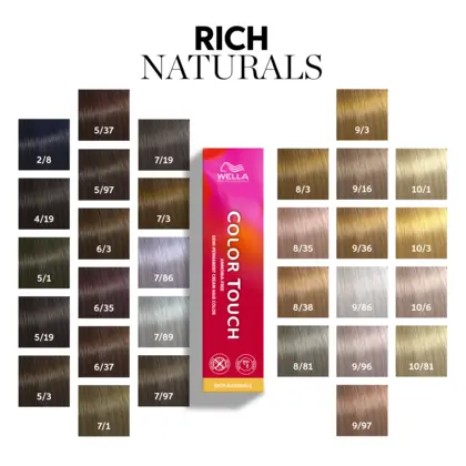 Απολαύστε την έντονη ζωντάνια και λάμψη της μόνιμης βαφής, με ημιμόνιμα αποτελέσματα χωρίς δεσμεύσεις, και όλα αυτά σε μια απρόσκοπτη εμπειρία με το Color Touch. Τώρα με αναβαθμισμένη Vegan σύνθεση με ενσωματωμένο Metal Purifier, χωρίς αμμωνία, χωρίς σιλικόνες και χωρίς ορυκτέλαια, το Color Touch σέβεται τα μαλλιά και είναι ανακυκλώσιμο. Απολαύστε περισσότερες από 90 αποχρώσεις για όλους.