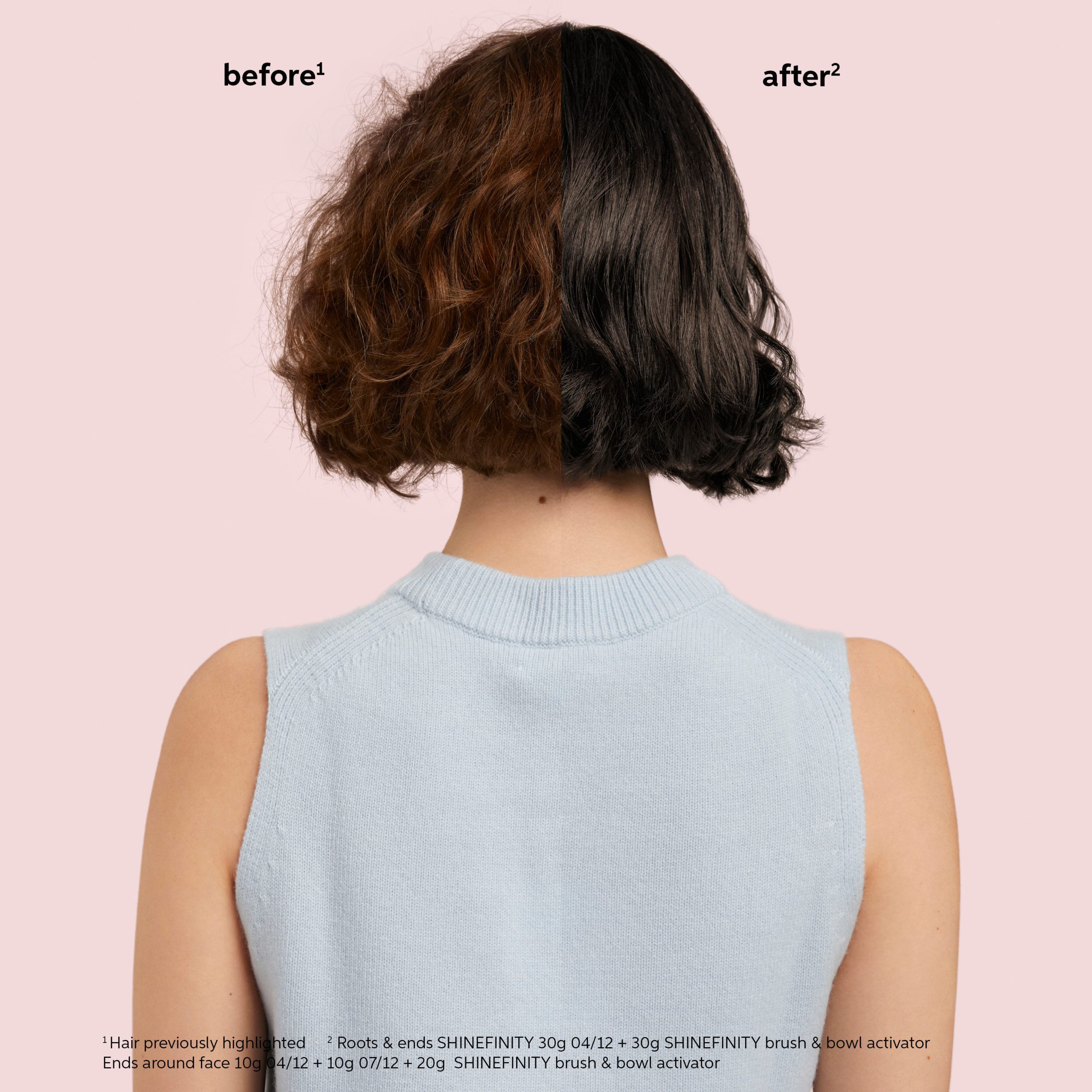 Απολαύστε την ακτινοβολία του Shinefinity, του πέπλου χρώματος που χαρίζει αποτελέσματα χωρίς ξάνοιγμα, χωρίς φθορά και με λάμψη που την αισθάνεσαι. Η σύνθεσή του χωρίς αμμωνία, σιλικόνες και οινόπνευμα εξασφαλίζει διάφανο φυσικό αποτέλεσμα.