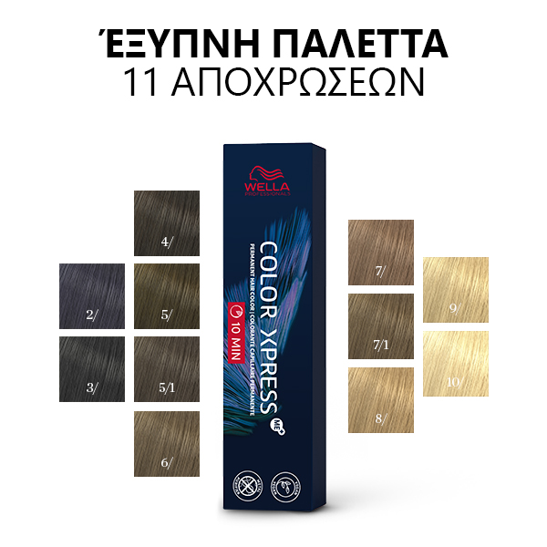 Δημιουργήστε γρήγορο, εντυπωσιακό χρώμα με την Color Xpress. Πετύχετε 100% κάλυψη των γκρίζων μαλλιών σε μόλις 10 λεπτά με την τεχνολογία Control-X αποφεύγοντας τις υπερβολικές τεχνικές εργασίες. Η τεχνολογία Metal Purifier προστατεύει τα μαλλιά από τη φθορά, ενώ η τεχνολογία χρώματος ME+ μειώνει τον κίνδυνο εμφάνισης αλλεργίας. Με vegan σύνθεση και παγκόσμια δέσμευση για μη διεξαγωγή δοκιμών σε ζώα.
